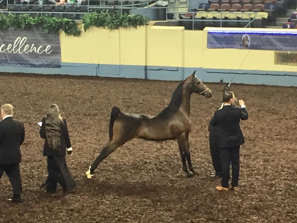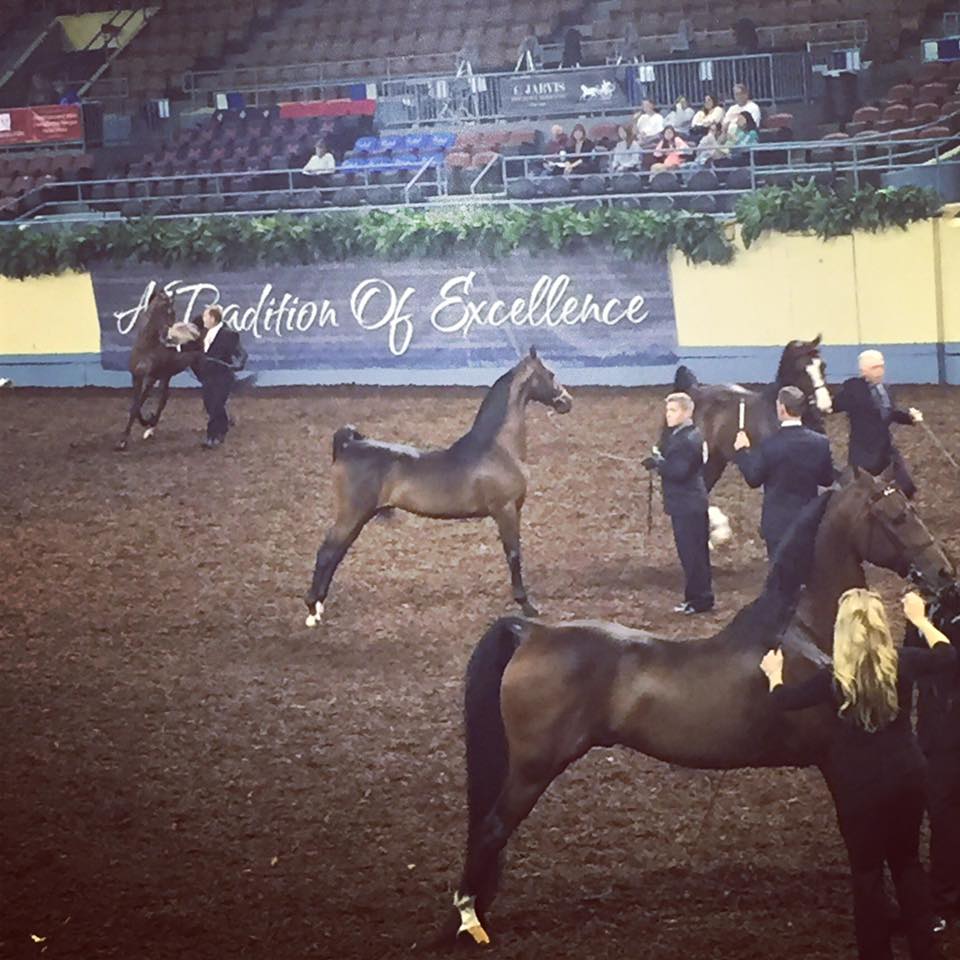 Dare won his yearling colt class then went on to win Reserve World Champion Junior Stallion. He went back in the ring with the “big boys” in the Open World championship class. It was such an honor to see “my” colt stand in that league of stallions. He also had a futurity in hand class of yearling colts and won a World Championship cooler there for his owners. We are so proud of him and excited for his future.
