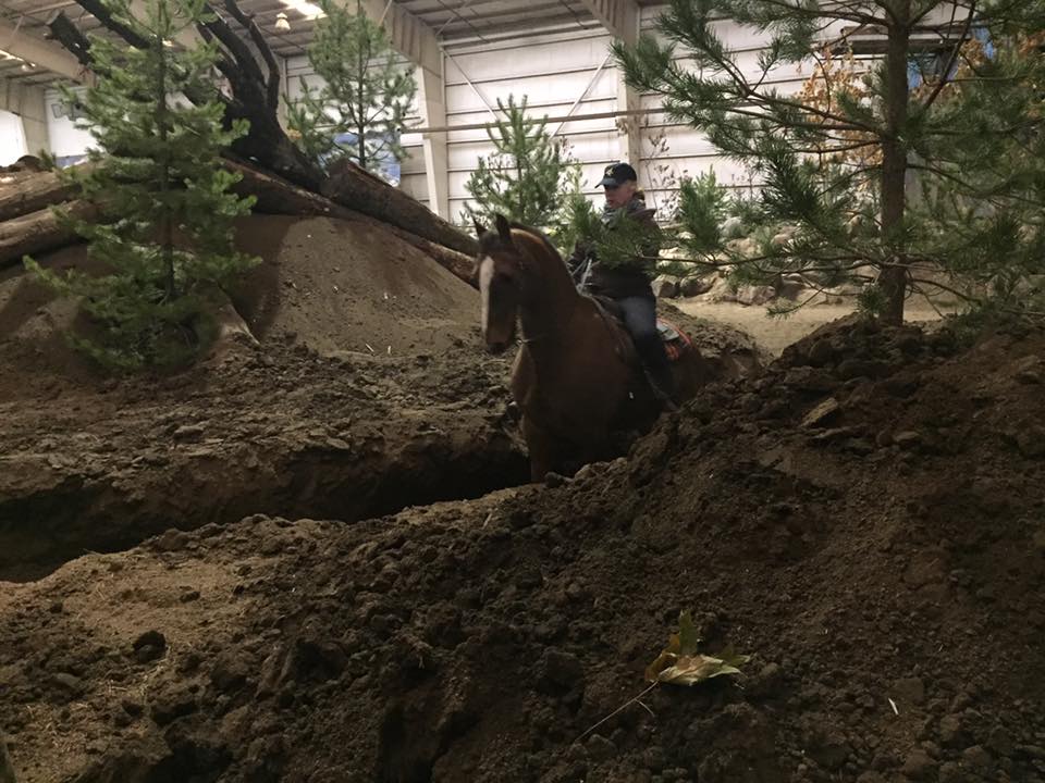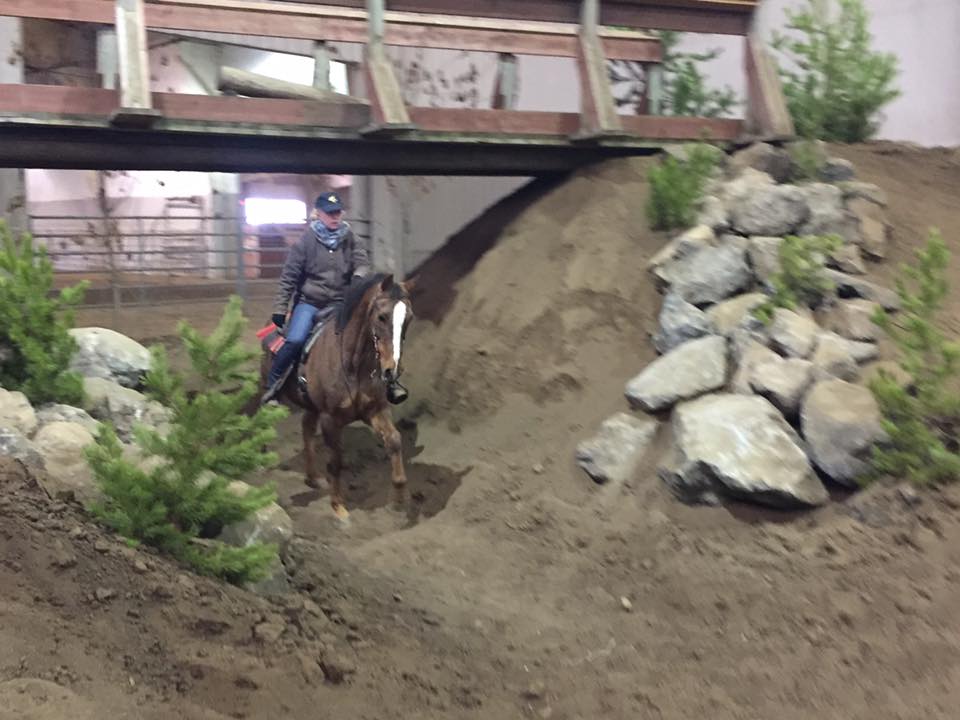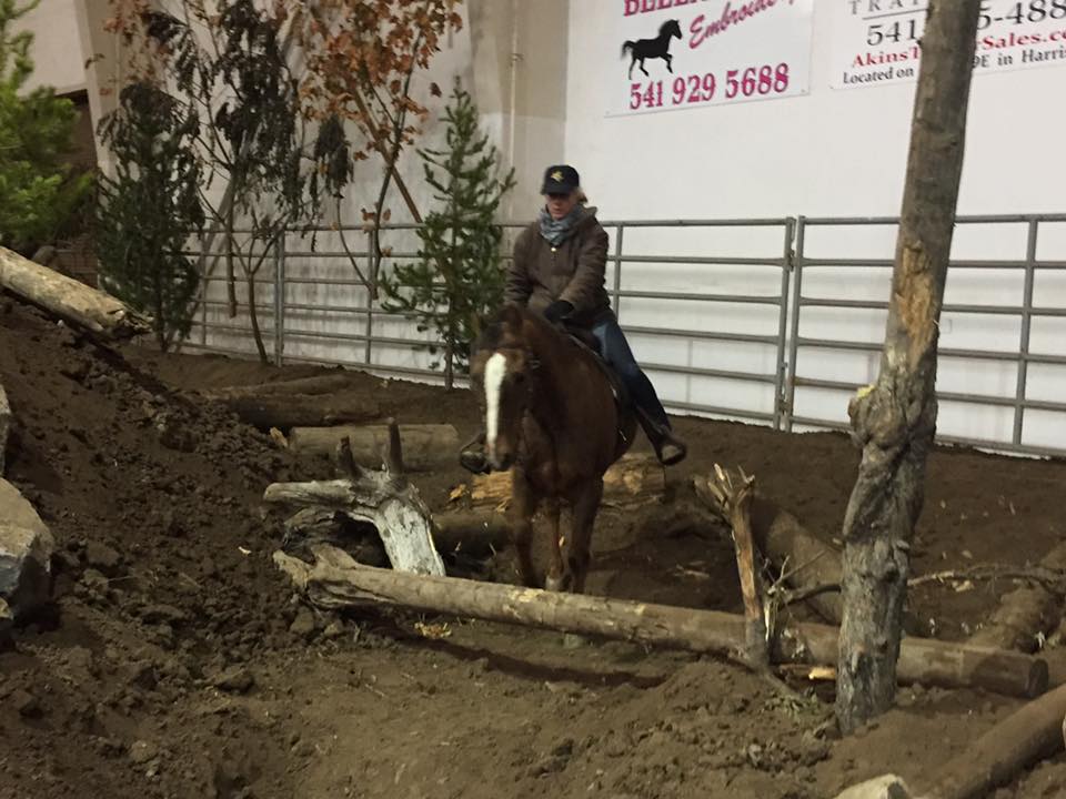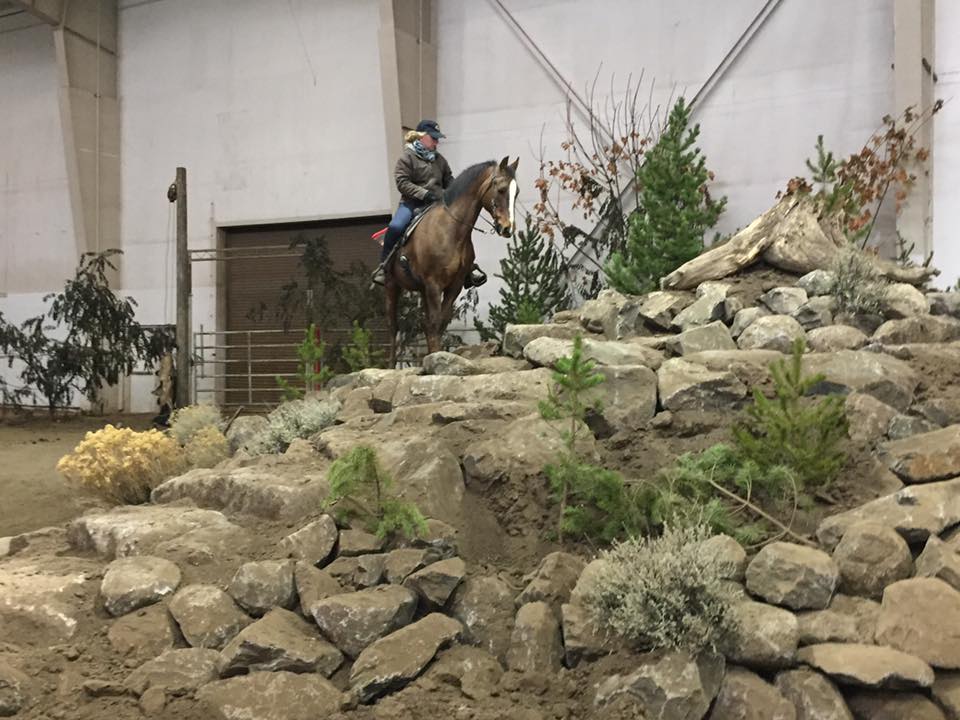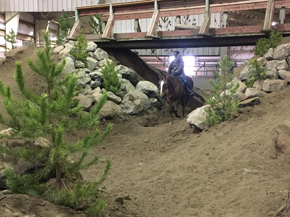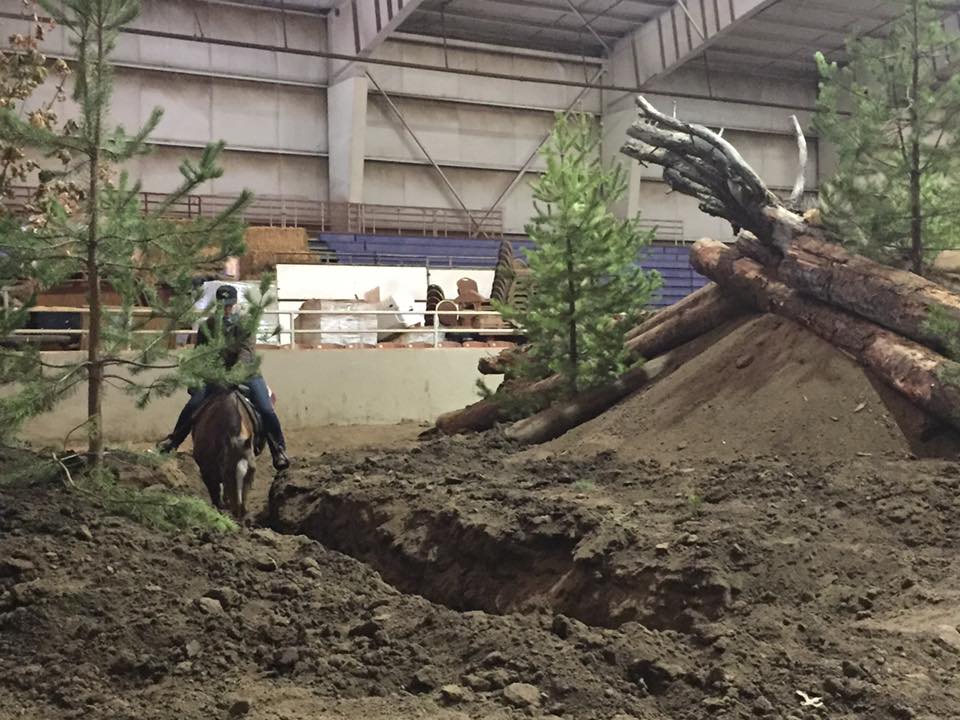 Ace got to play on the mountain trail course at the Oregon Horse Center