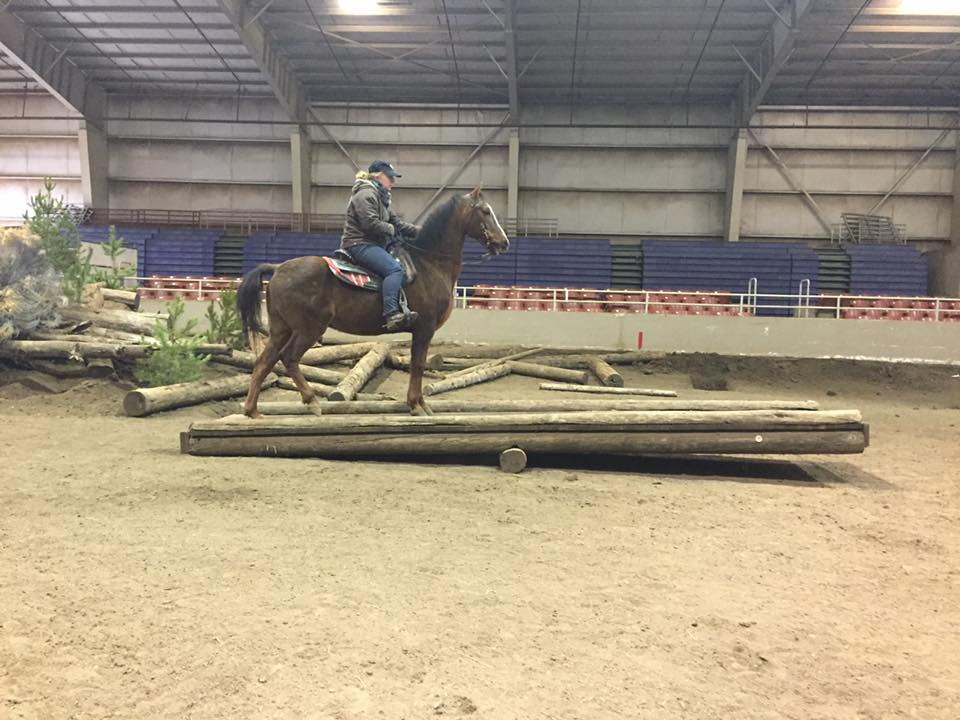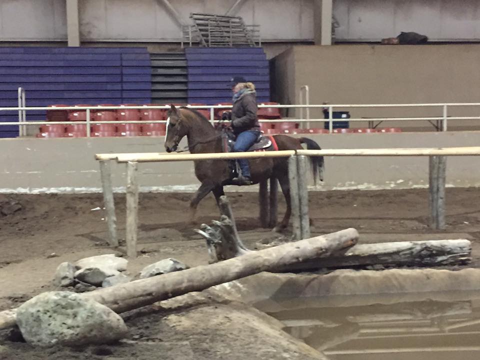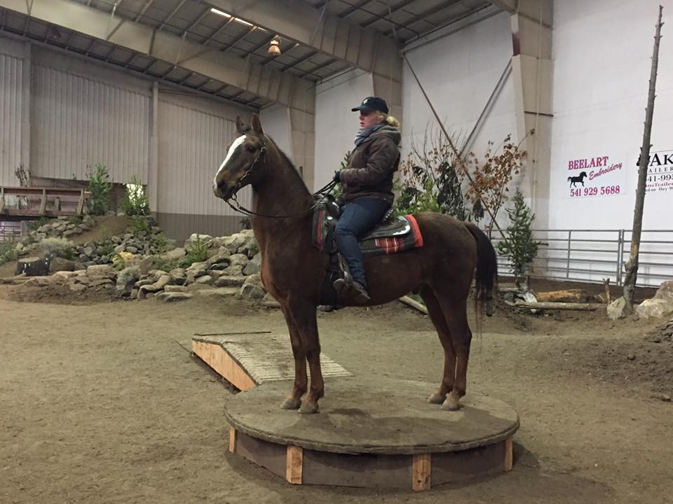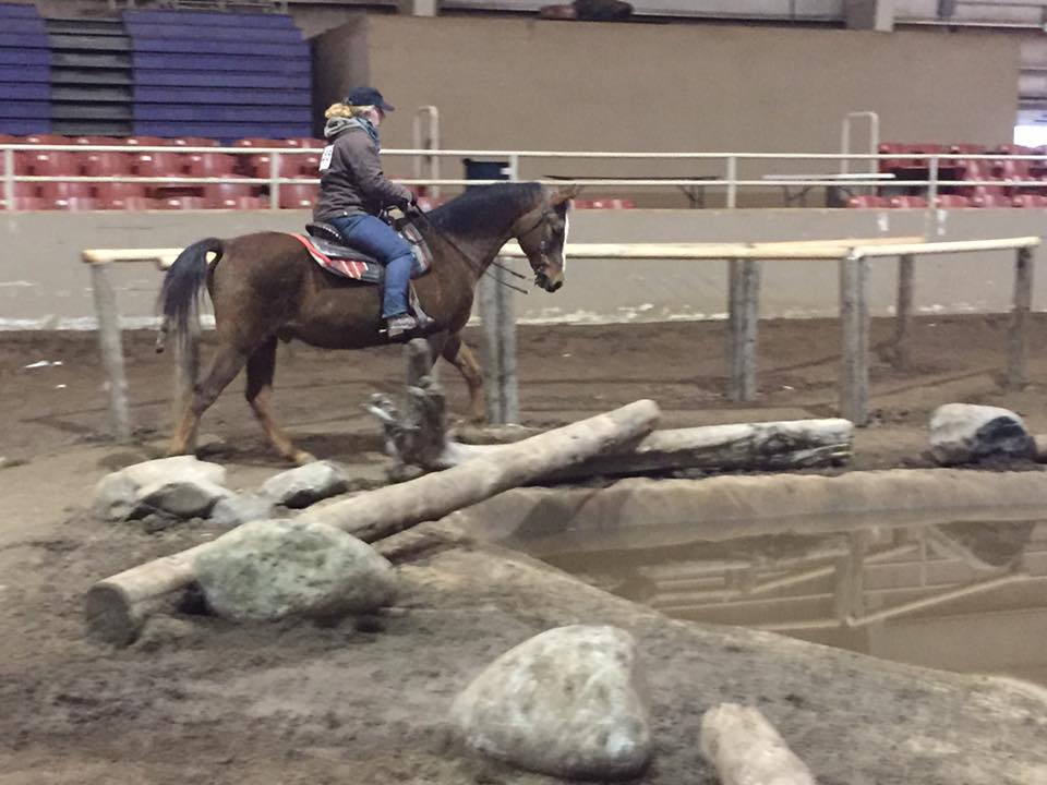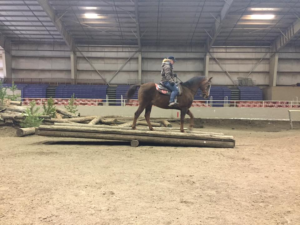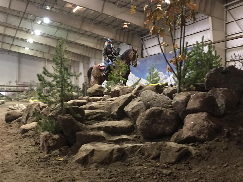 Ace got to play on the mountain trail course at the Oregon Horse Center